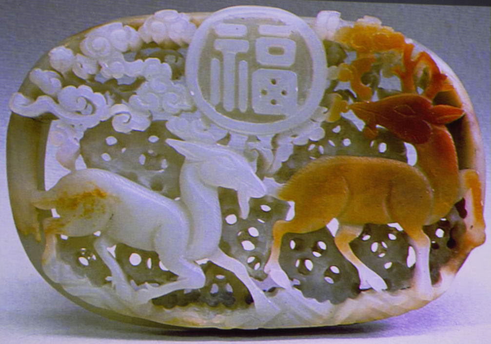 Even though nephrite can come in natural colours other than green and white, by the time of the Ming Dynasty, colour was introduced to the carvings in the form of dyes and stain.