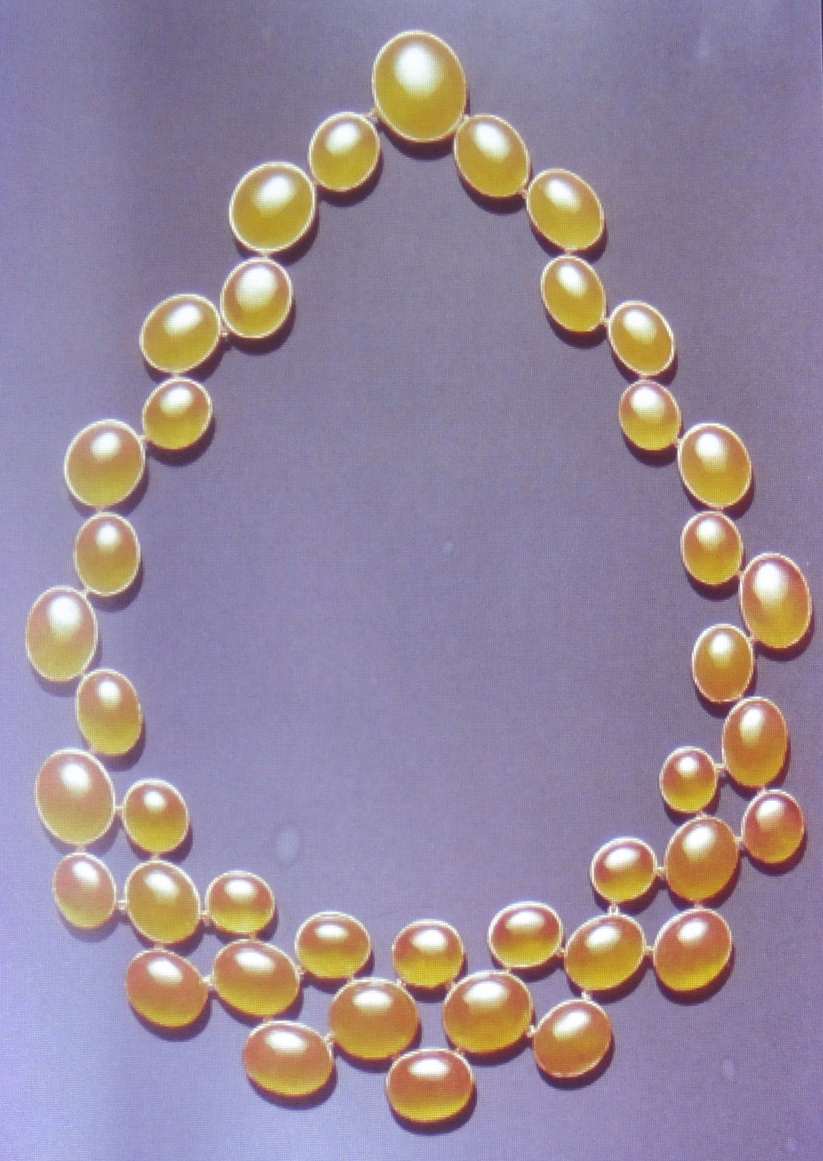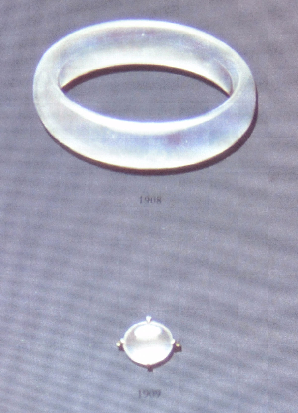 Beads, bangles and drops have a great waste factor, so their value goes up faster (beads typically have a 50% waste factor). Smooth trumps carved material in value in jadeite, and cracked cabochons have less value because they don’t sell.