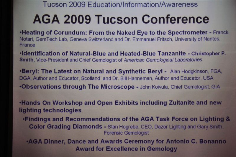 Michael Gibson, Geologist and FGA followed with his reasons for why he’s been attending the show for 15 years. Michael broke it down to these: Education, Buying and Selling, Seeing the Usual, Seeing the Unusual, Eye Candy, Trade Camaraderie, Seeing Friends and Finding “Your” Kind of Fun. One of the highlights of Michael’s experience this year was a conference topic on light sources. He provided each of us with a CD entitled “Lighting and Its Effect on Color-Grading Colorless Diamonds” by Stan Hogrebe, CEO of Dazor, which you can view from the AGA website link below.