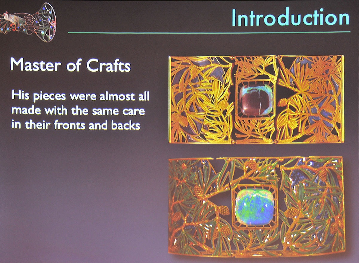 His talk concentrated on the important role Brazilian gem discoveries played in influencing the creations of big-name designers world-wide. This abundance of colorful gems from Brazil played an important role.
