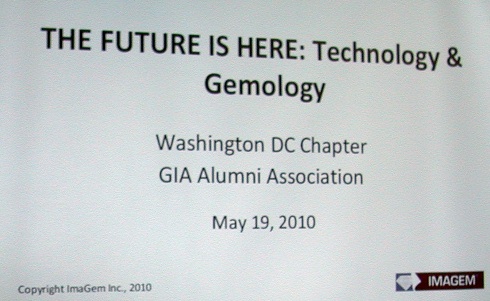 On May 19, 2010, the DC Chapter of the GIA Alumni Association had the opportunity to hear from Ms. Suzanna Stull, Director of International Sales for ImaGem Inc., in Philadelphia, Pennsylvania. Ms. Stull’s presentation was entitled “The Future is Here: Technology and Gemology” and focused on recent advancements in automated technologies for identifying and grading gemstones, particularly diamonds.