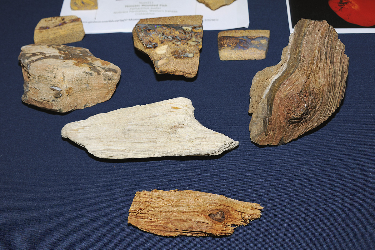 Courtland displayed beads made from the Maryland State Gemstone, the Patuxent River Stone. He also had beads from petrified dinasour teeth.