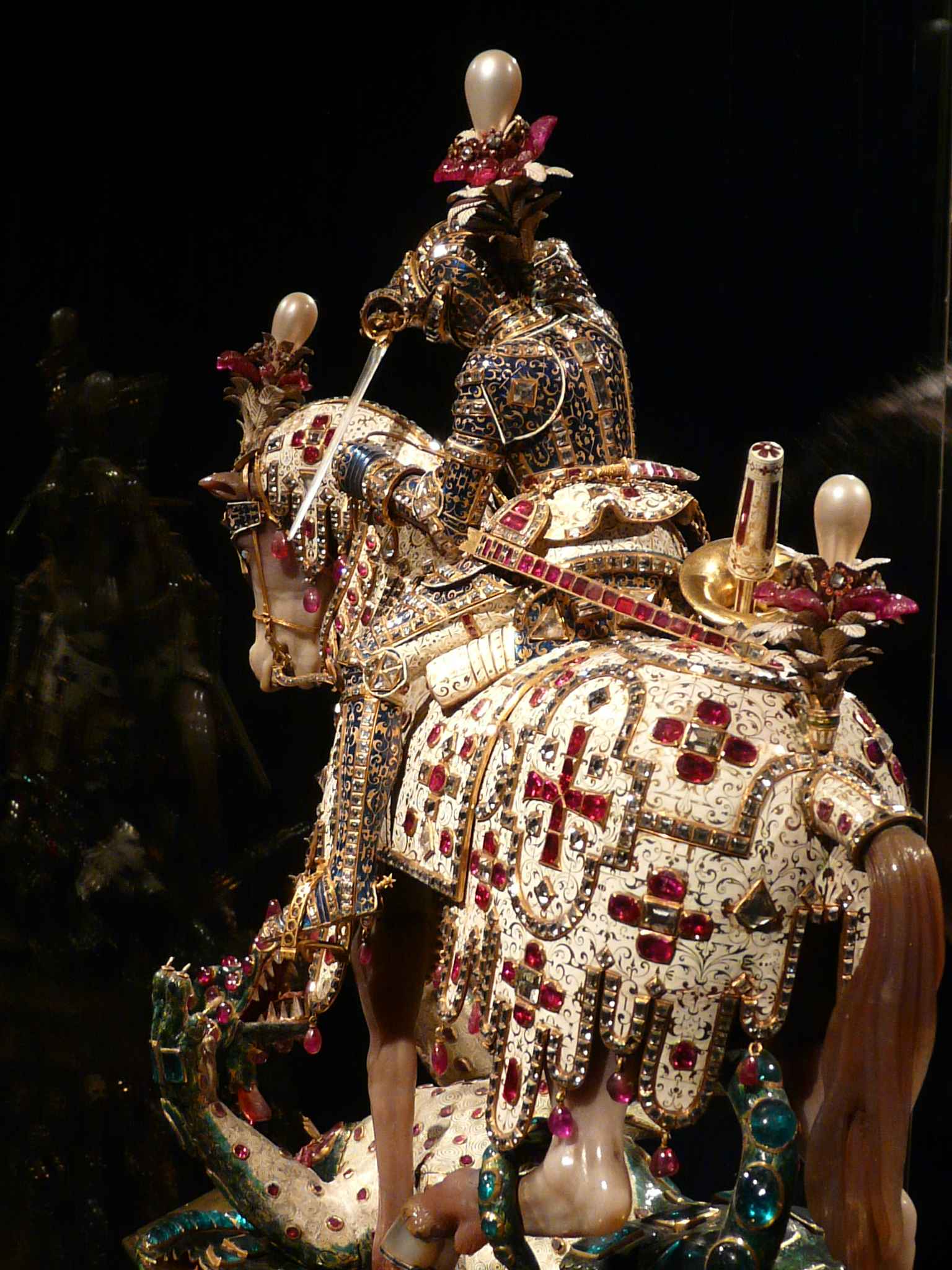 From the Munich Treasury – The Wittelsbachs’ Treasury, founded in 1565 by Duke Albrecht V, is one of the most important of its kind in Europe. The collection covers the late Graeco-Roman period and the Middle Ages, the late Gothic and Renaissance periods, with the statuette of St. George, created between 1586 and 1597, and the baroque and neoclassical eras. The Treasury contains over 1,250 works of art. They include such unique items as the insignia of the Kings and Queens of Bavaria, their jewels and orders, masterpieces of the goldsmith’s art and objects made from rock crystal, precious stones and ivory.