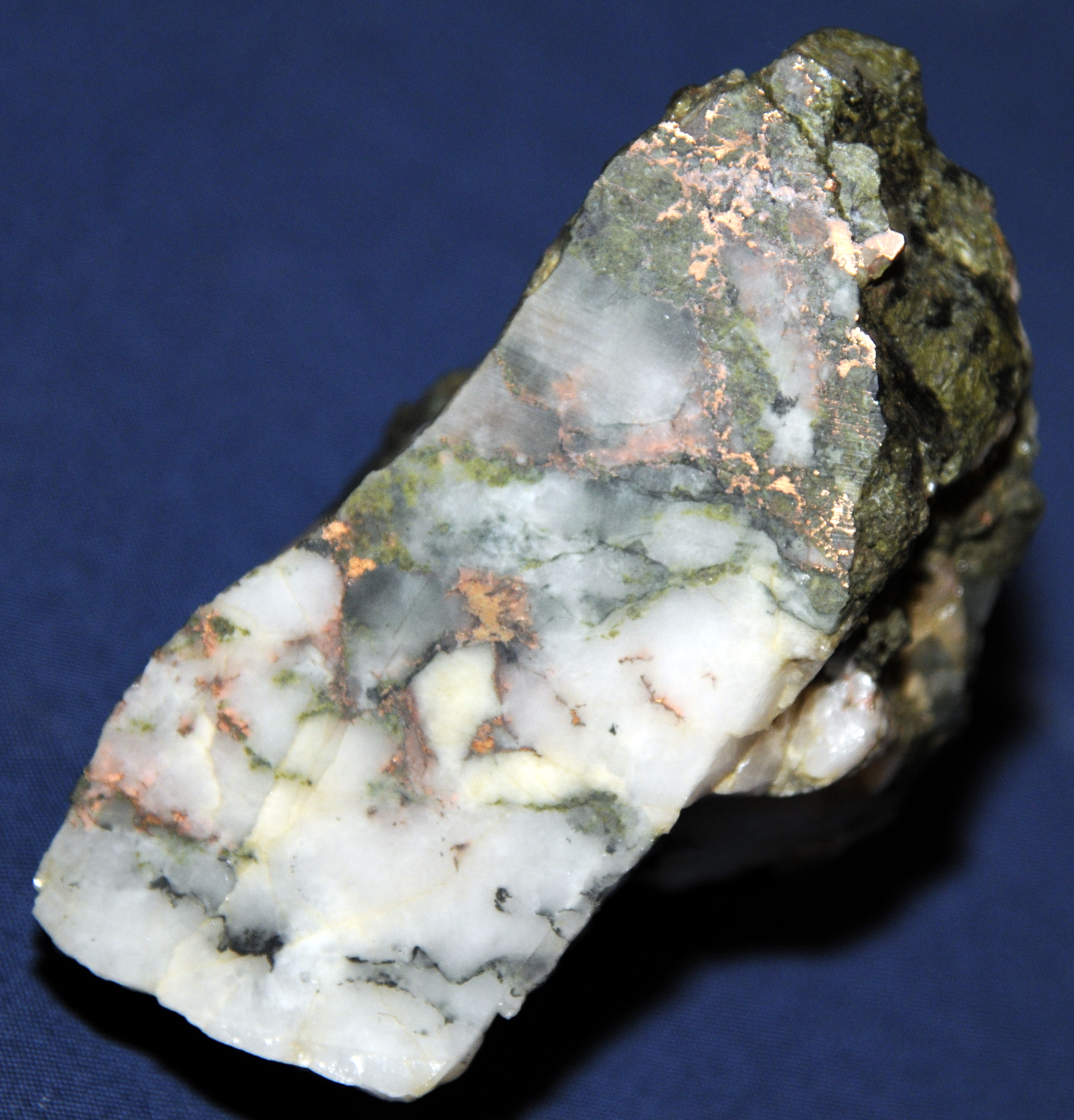 is old Maryland/Penna native copper mined pre civil war and again by the Confederates up until Antietam . Bright native copper against a white guartz and calcite background is a classic Mid Atlantic gem. See appalachian gem trails.
