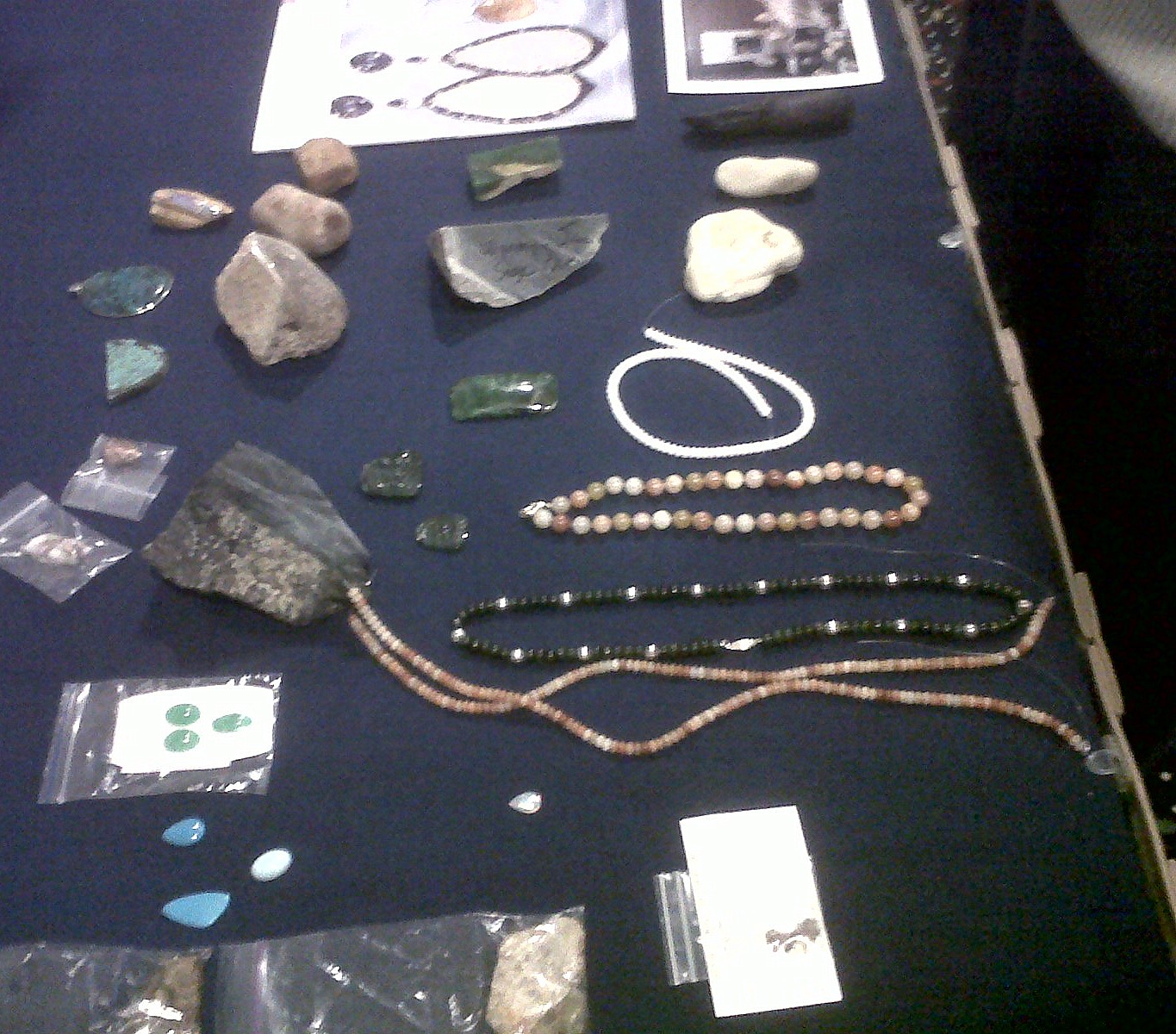 Courtland displayed beads made from the Maryland State Gemstone, the Patuxent River Stone. He also had beads from petrified dinosaur teeth. Courtland’s main focus is Mineral Specimens, he shared a few items: