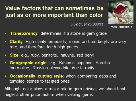 3 – Transparency and other factors are often more important than color in determining rare gem pricing, although color and cut matter as well.