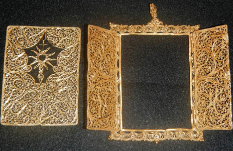 The most interesting item discussed was a gold frame and insert (pyx), hand crafted in the late 1600’s or early 1700’s used to carry the Blessed Sacrament (host or communion wafer).