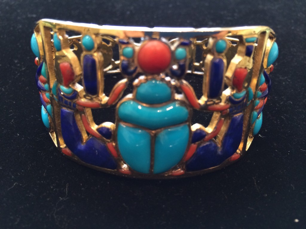 18kt. yellow gold Coral Lapis Turquoise bangle bracelet. 77 grams.