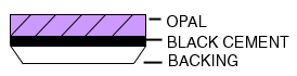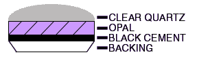 Assembled Opal: Doublets & Triplets are partially man-made stones, consisting of only a paper-thin slice of opal cemented to a black backing. Triplets have, in addition to this, a clear quartz or glass capping over the top to magnify the color, protect the opal, and give it a cabochon (domed) appearance. The idea of doublets and triplets is to imitate valuable black opals at a fraction of the cost.